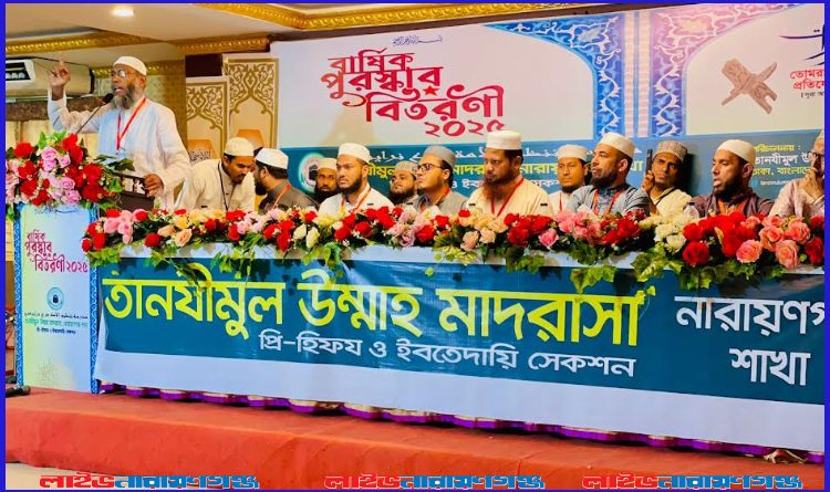বৃহস্পতিবার (২ অক্টোবর) দুপুরবেলা নারায়ণগঞ্জের সিদ্ধিরগঞ্জ এলাকার চিটাগাংরোডে গ্র্যান্ড তাজ পার্টি সেন্টারে তানযীমুল উম্মাহ মাদ্রাসা, নারায়ণগঞ্জ শাখা প্রি-হিফয ও ইবতেদায়ী সেকশনের বার্ষিক পুরস্কার বিতরণী অনুষ্ঠান-২০২৫-এর দ্বিতীয় অধিবেশনে প্রধান অতিথির বক্তব্যে তিনি এই আহ্বান জানান।