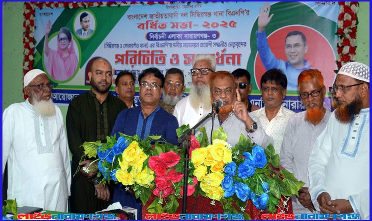 শনিবার (১৮ অক্টোবর) বিকেলে সিদ্ধিরগঞ্জ থানা বিএনপির বর্ধিত সভা এবং নারায়ণগঞ্জ-৩ আসনের দলীয় মনোনয়ন প্রত্যাশী নেতৃবৃন্দের পরিচিতি ও সংবর্ধনা অনুষ্ঠানে প্রধান অতিথির বক্তব্যে তিনি এসব কথা বলেন।