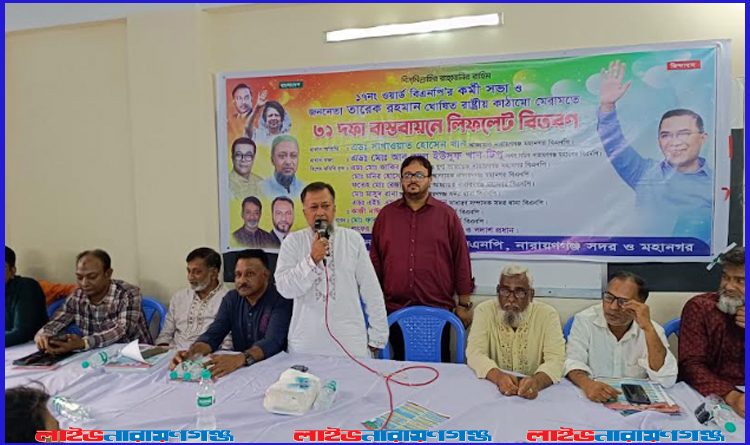 মহানগর ১৭নং ওয়ার্ড বিএনপির সভাপতি ফারুক আহমেদের সভাপতিত্বে ও সাধারণ সম্পাদক কাজী জিয়াউল হাসান নাঈমের সঞ্চালনায় এই পথসভায় মহানগর বিএনপির যুগ্ম আহ্বায়ক মনির হোসেন খান, ফতেহ মোহাম্মদ রেজা রিপন, নারায়ণগঞ্জ সদর থানা বিএনপির সভাপতি মাসুদ রানা, সাধারণ সম্পাদক এড. এইচ এম আনোয়ার প্রধানসহ বিএনপি ও অঙ্গসংগঠনের নেতৃবৃন্দ উপস্থিত ছিলেন।