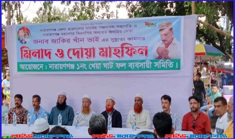 লাইভ নারায়ণগঞ্জ: নারায়ণগঞ্জ জেলা ছাত্রদলের সাবেক সভাপতি এবং মহানগর বিএনপির অন্যতম নেতা জাকির খানের দ্রুত আরোগ্য ও সুস্থতা কামনায় দোয়া ও মিলাদ মাহফিলের আয়োজন করা হয়েছিল। নারায়ণগঞ্জ ১নং খেয়াঘাট ফল ব্যবসায়ী সমিতির উদ্যোগে মঙ্গলবার (২১ অক্টোবর) বাদ আসর ১নং খেয়াঘাট সংলগ্ন এলাকায় এই মিলাদ অনুষ্ঠিত হয়।