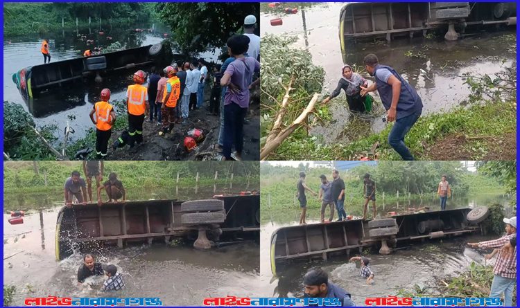 ঢাকা-চট্টগ্রাম মহাসড়কে খাদে পড়ল যাত্রীবাহী বাস, আহত অন্তত ১০