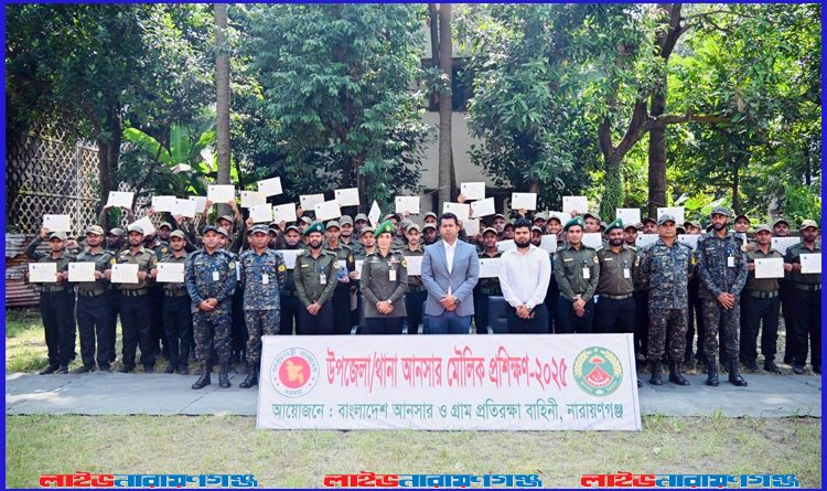 লাইভ নারায়ণগঞ্জ: বাংলাদেশ আনসার ও গ্রাম প্রতিরক্ষা বাহিনী, নারায়ণগঞ্জ এর উদ্যোগে ১৪ দিনব্যাপী উপজেলা-থানা আনসার মৌলিক প্রশিক্ষণ (৩য় ধাপ) এর সমাপনী অনুষ্ঠানের আয়োজন করা হয়েছে। দেশরক্ষা ও অভ্যন্তরীণ নিরাপত্তা জোরদার করার লক্ষ্য নিয়ে শনিবার (১৮ অক্টোবর) আয়োজিত এই প্রশিক্ষণে জেলার মোট ১২৭ জন (আবাসিক-অনাবাসিক) প্রশিক্ষণার্থী স্বতঃস্ফূর্তভাবে অংশগ্রহণ করেন।