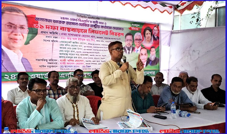 ২৪নং ওয়ার্ড বিএনপির সভাপতি হাজী মনির হোসেনের সভাপতিত্বে এবং সাধারণ সম্পাদক হাজী জাবেদ হোসেনের সঞ্চালনায় অনুষ্ঠানে প্রধান বক্তা হিসেবে উপস্থিত ছিলেন মহানগর বিএনপির সদস্য সচিব অ্যাডভোকেট আবু আল ইউসুফ খান টিপু। এছাড়াও মহানগর ও বন্দর থানা বিএনপির অন্যান্য নেতৃবৃন্দ উপস্থিত ছিলেন।