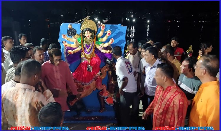 না.গঞ্জে বিষাদ-আনন্দের মিশ্রণে বিসর্জনের মধ্যে দিয়ে শেষ হলো দুর্গাপূজা