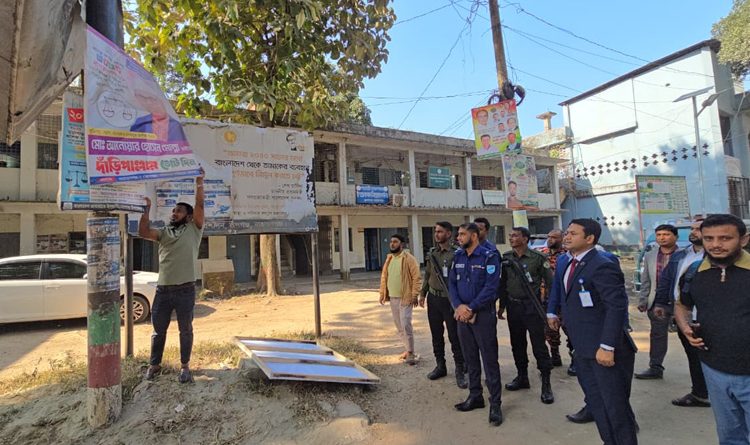 নির্বাচনী ব্যানার ফেস্টুট সরাতে রূপগঞ্জে প্রশাসনের উচ্ছেদ অভিযান