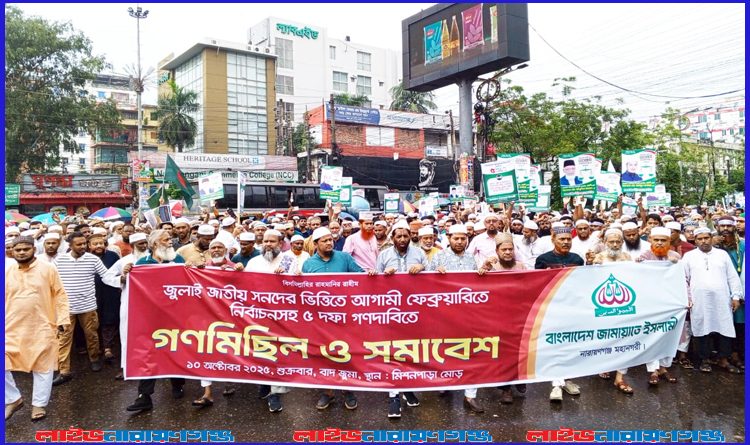 শুক্রবার (১০ অক্টোবর) বাদ জুম’আ শহরের মিশন পাড়া মোড় থেকে শুরু হওয়া এই মিছিলটি নারায়ণগঞ্জের রাজপথে দলটির রাজনৈতিক অবস্থানকে আরও একবার স্পষ্ট করলো। মিছিল থেকে জামায়াত নেতারা ঘোষণা করেন, দেশে আর কোনো ‘ফ্যাসিবাদ’ যেন মাথাচাড়া দিয়ে উঠতে না পারে, সেজন্য পিআর পদ্ধতিতে নির্বাচন এবং জুলাই সনদ বাস্তবায়ন এখন গণদাবিতে পরিণত হয়েছে।