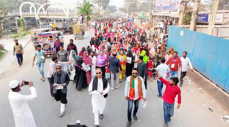 সিদ্ধিরগঞ্জে ধানের শীষের পক্ষে রুহুল-সাজ্জাদের নেতৃত্বে প্রচারণা