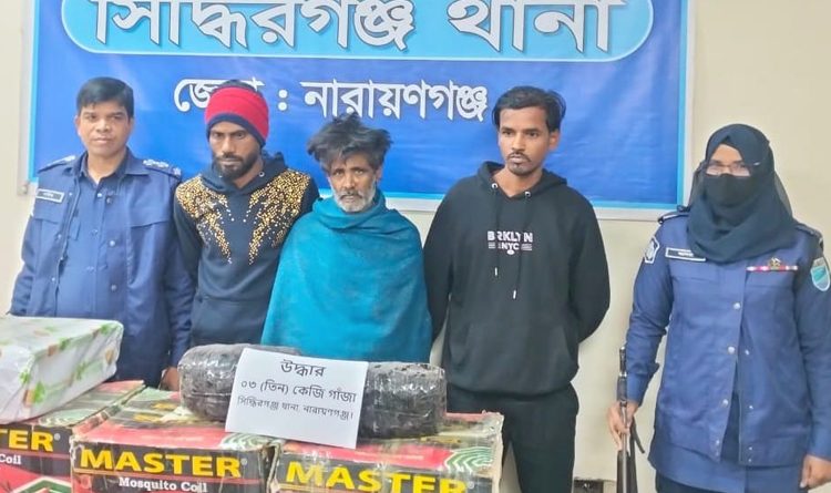 সিদ্ধিরগঞ্জে ৩ কেজি গাঁজাসহ তিন মাদক ব্যবসায়ী গ্রেফতার