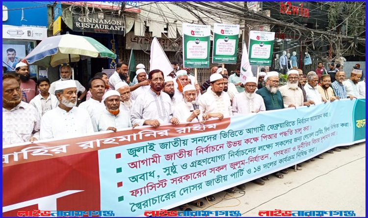 লাইভ নারায়ণগঞ্জ: আসন্ন জাতীয় নির্বাচনকে সামনে রেখে কেন্দ্রীয় কর্মসূচির অংশ হিসেবে পাঁচ দফা দাবি বাস্তবায়নের দাবিতে নারায়ণগঞ্জ জেলা ও মহানগরী জামায়াতে ইসলামীর উদ্যোগে মানববন্ধন অনুষ্ঠিত হয়েছে। বুধবার (১৫ অক্টোবর) সকাল ১১টায় নারায়ণগঞ্জ প্রেসক্লাবের সামনে এই কর্মসূচি পালিত হয়।
