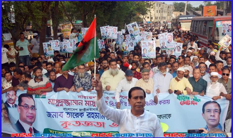 লাইভ নারায়ণগঞ্জ: নারায়ণগঞ্জ-৫ আসনে বাংলাদেশ জাতীয়তাবাদী দলের (বিএনপি) মনোনীত প্রার্থী হিসেবে মাসুদুজ্জামান মাসুদকে মনোনয়ন দেওয়ায় দলের উচ্চ নেতৃত্বকে ধন্যবাদ ও