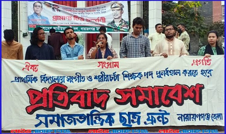 Read Moreলাইভ নারায়ণগঞ্জ: প্রাথমিকে সংগীত ও শারীরচর্চা শিক্ষকের পদ পুনর্বহালের দাবিতে শুক্রবার (১৪ নভেম্বর) বিকাল ৪টায় সমাজতান্ত্রিক ছাত্র ফ্রন্ট, নারায়ণগঞ্জ জেলার