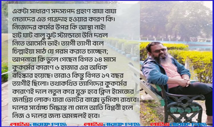 Read Moreলাইভ নারায়ণগঞ্জ: নারায়ণগঞ্জ মহানগর বিএনপির সদস্য অ্যাডভোকেট মো. শরীফুল ইসলাম শিপলু সামাজিক যোগাযোগ মাধ্যম ফেসবুকে এক স্ট্যাটাসের মাধ্যমে দলের অভ্যন্তরে